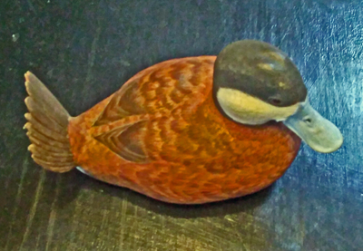 The ruddy duck is a duck from North America and one of the stiff-tailed ducks. The genus name is derived from Ancient Greek oxus, "sharp", and oura, "tail", and jamaicensis is "from Jamaica". The Andean duck was considered a subspecies. Click to hear the Ruddy Duck Call
