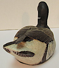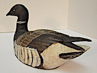 The brant is a small goose with a short, stubby bill. It measures 55–66 cm (22–26 in) long, 106–121 cm (42–48 in) across the wings and weighs 0.88–2.2 kg (1.9–4.9 lb) The under-tail is pure white, and the tail black and very short (the shortest of any goose) The black brant B. b. nigricans appears blackish-brown and white in colour. This form is a very contrastingly black and white bird, with a uniformly dark sooty-brown back, similarly coloured underparts (with the dark colour extending furthest back of the three forms) and a prominent white flank patch; it also has larger white neck patches, forming a near-complete collar. The population of about 125000 breeds in northwestern Canada, Alaska and eastern Siberia, and winters mostly on the west coast of North America from southern Alaska to California, but also some in east Asia, mainly Japan. Source Wikipedia $595 CDN Plus shipping and handling